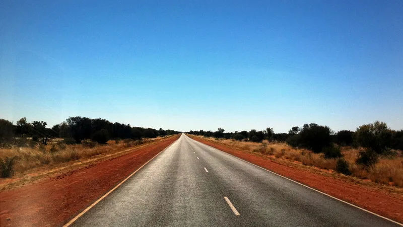 Bu çöllerde yakıt deponuzun hemen her zaman dolu olması öneriliyor. Yolda hemen hemen hiç viraj yok ve dümdüz, gökyüzündeki beyaz bulutlar, yeşil ağaçlar ve kırmızı toprakla ahenkli muhteşem bir manzarayı izleyerek yol alıyoruz. İlk önce oldukça süratli araç kullanmama rağmen saat 3:30 sonrası yavaşlamak zorunda kaldım.