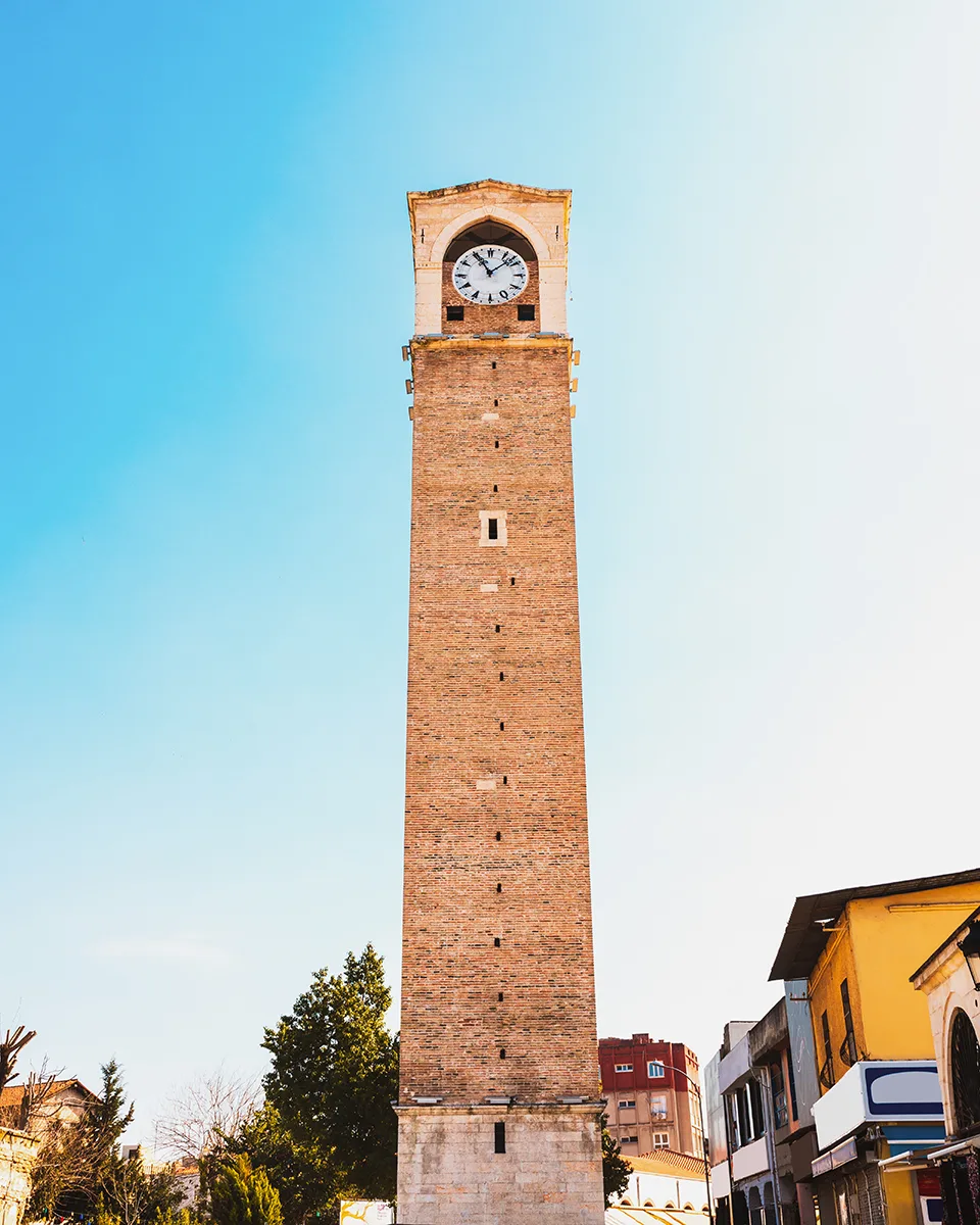 Adana Büyük Saat, Türkiye’nin en büyük saat kulesi. 32 metre yüksekliği ile Osmanlı zamanında inşa edilen en uzun saat kulesi olan Büyük Saat, 1882’de tamamlanmış. Büyük Saat Kulesi’nin tam karşısında yer alan Adana Bedesteni, bir 16. yüzyıl yapısı. Bedesten ve çevresi ticari anlamda halen Adana ekonomisindeki önemini koruyor. Adana Bedesteni, haftanın 7 günü 08.30-19.00 saatleri arasında ziyarete açık.