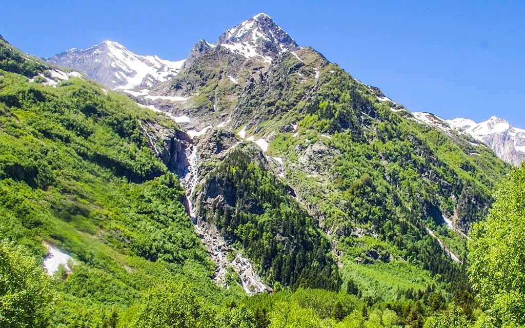 Yaz aylarında burası buzullara, akarsuları, şelaleleri, dağ gölleri ve ormanlarıyla ile büyüleyici dağ manzara sunuyor. Burası trekking rotalarıyla insanın başını döndürecek güzellikte. Bir yanda sanki hiç el değmemiş doğa, diğer yanda zirvesi her daim karlı dağlar ve kadim ormanlar. Kafkasya coğrafyası hakikaten bambaşka!
