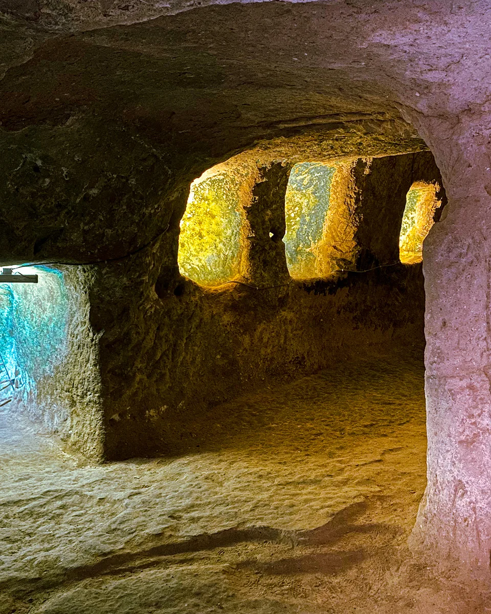 Kaya içine oyulmuş girişin arkasında Vaftizci Yahya’ya adanmış üçlü bir bazilika bulunuyor. Hz. İsa’nın vaftizini gerçekleştiren Yahya’nın öldürülmesine neden olan ve Salome’nin Dansı’nı tasvir eden duvar resimleriyle ünlü olan kilise, Bizans Dönemi’nde Aziz Hieron’a ait kutsal emanetlerin saklanmasıyla da ünlü.