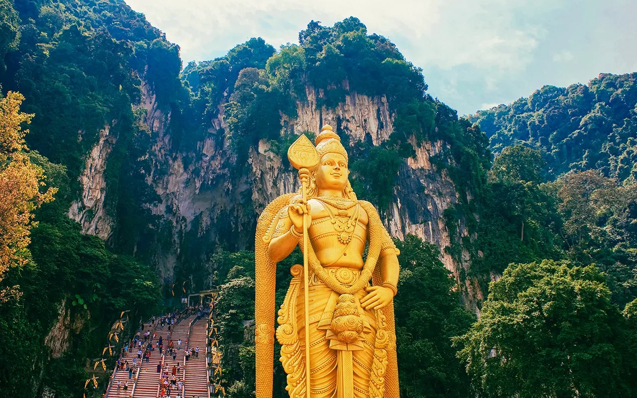 Malezya’nın en büyük heykeli olan 43 metre yüksekliğindeki Lord Murugan Heykeli, Batu Mağarasının önünde yükseliyor. Hinduların en büyük ikinci heykeli. 2006 yılında çelik sütunlar üzerine betondan yapılan heykel altın ile boyalı.