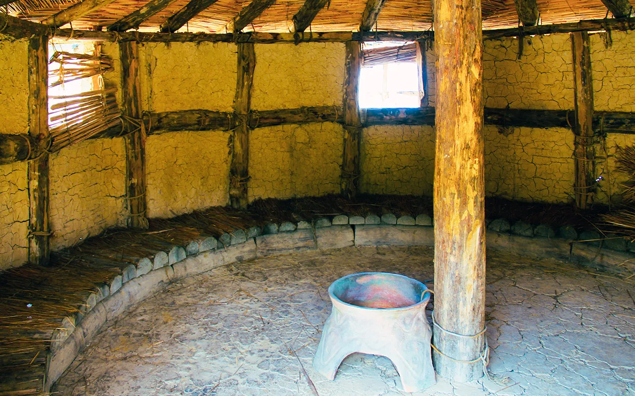 Kemikler Körfezi adı biraz abartılı gibi gelebilir ama aslında doğru: Göl tabanında bulunan binlerce hayvan kemiği nedeniyle bu ismi almış. Ancak tekrar edeyim, insan iskeleti çıkmamış—yakma geleneği varmış o dönemde. Tarih öncesi insanların düşmanlardan ve vahşi hayvanlardan korunmak için suya kazıklar çakıp üzerine evler inşa ettikleri biliniyor. Platform karaya ahşap bir köprü ile bağlıydı, rekonstrüksiyonda da aynı sistem kullanılmış.