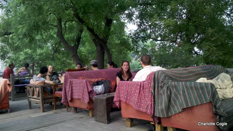 The Drum and Bell Tower pub sits between the Drum and Bell Towers in a small circular street lined with rickshaws and their drivers. The towers themselves are on the tourist route and sit next to Houhei, but they aren’t that exciting. The D and B pub however offers cheap beer on a roof top shaded by trees. Don’t use your energy climbing the tower stairs: have a nice cool beer in the shade!
