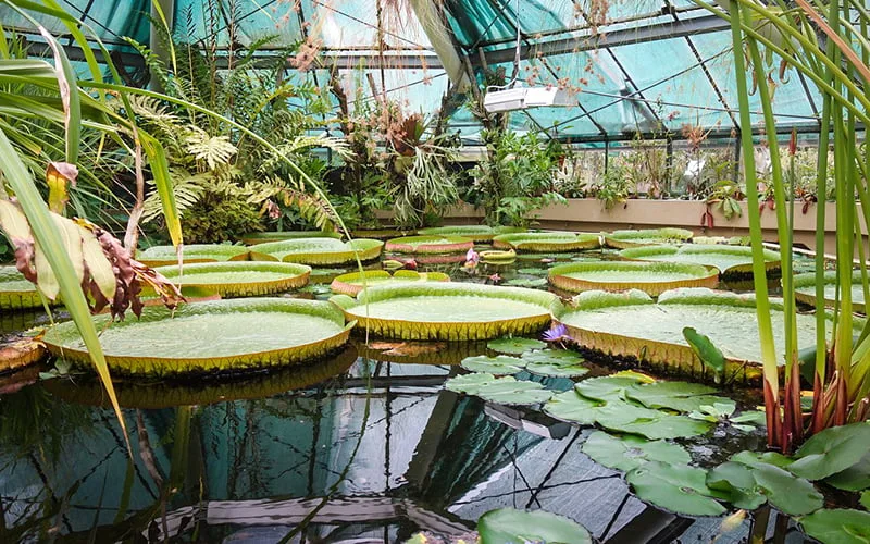 Sekizgen biçiminde yapılmış olan Victoria House ise havuz ve göletleriyle dev Amazon su zambaklarına ev sahipliği yapıyor. Yine en ilginç bitkilerden biri olan dev etobur bitkiler de gölün etrafında sıralanıyor. Botanik bahçesinin kuzeyinde yer alan diktörken bir havuzda zambaklar ve etrafında ise Asya bahçeleri var. Bahçelerde Japon kiraz ağaçları, bambular ve harika bir bonsai ağacı koleksiyonu bulunuyor.