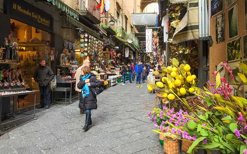 Via San Gregorio Armeno, sanatçılar sokağı olarak biliniyor ve bölgeye özgü tasarımları burada görebilirsiniz. Via San Gregorio Armeno boyunca Noel ruhu tüm yıl boyunca örme taş kaldırımlarda, Via dei Tribunali ile Via San Biagio dei Librai arasında yaşamaya devam ediyor.
