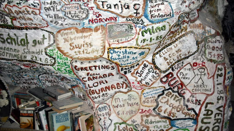 Mad Max: Beyond the Thunderdome filminde de yer alan, kayalara oyularak mağara şeklinde yapılmış bu ilginç evin tüm duvarlarında gelen kişilerin isimleri ve Harry için yazdıkları övgü dolu yazılar süslüyor.