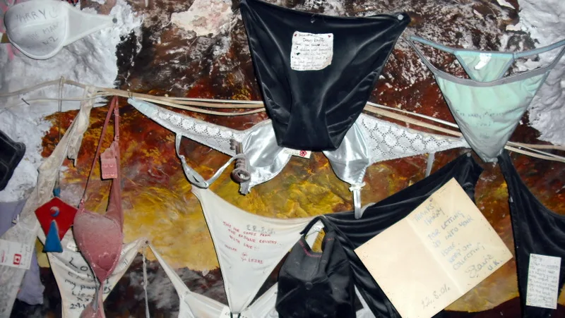 Hemen her yerde, tavanda ve duvarlarda Harry’e hayran kızların onlarca iç çamaşırı asılı. Yine şapkalar, kartvizitler, tişört ve terlikler ve bir birinden ilginç şeyleri asılı görünce şaşırmamak elde değil.