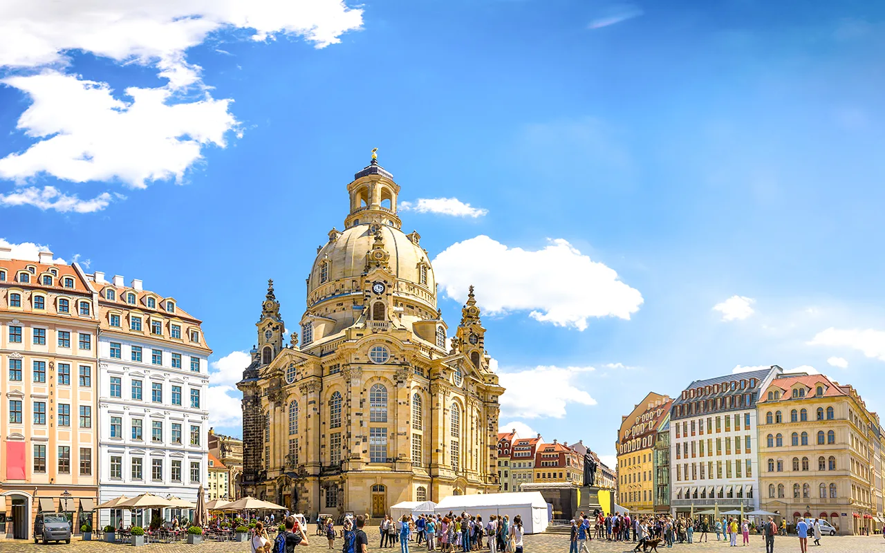Frauenkirche (Church of Our Lady), Dresden’in barok mimari kimliğinin en güçlü sembollerinden biri. Tüm kente hâkim dev kubbesiyle, rekonstrüksiyonun dünyadaki en çarpıcı örneklerinden sayılıyor. Dresden’in eski şehir merkezinin temel yapı taşlarından biri olan kilise, ilk olarak 1743 yılında tamamlanmış.