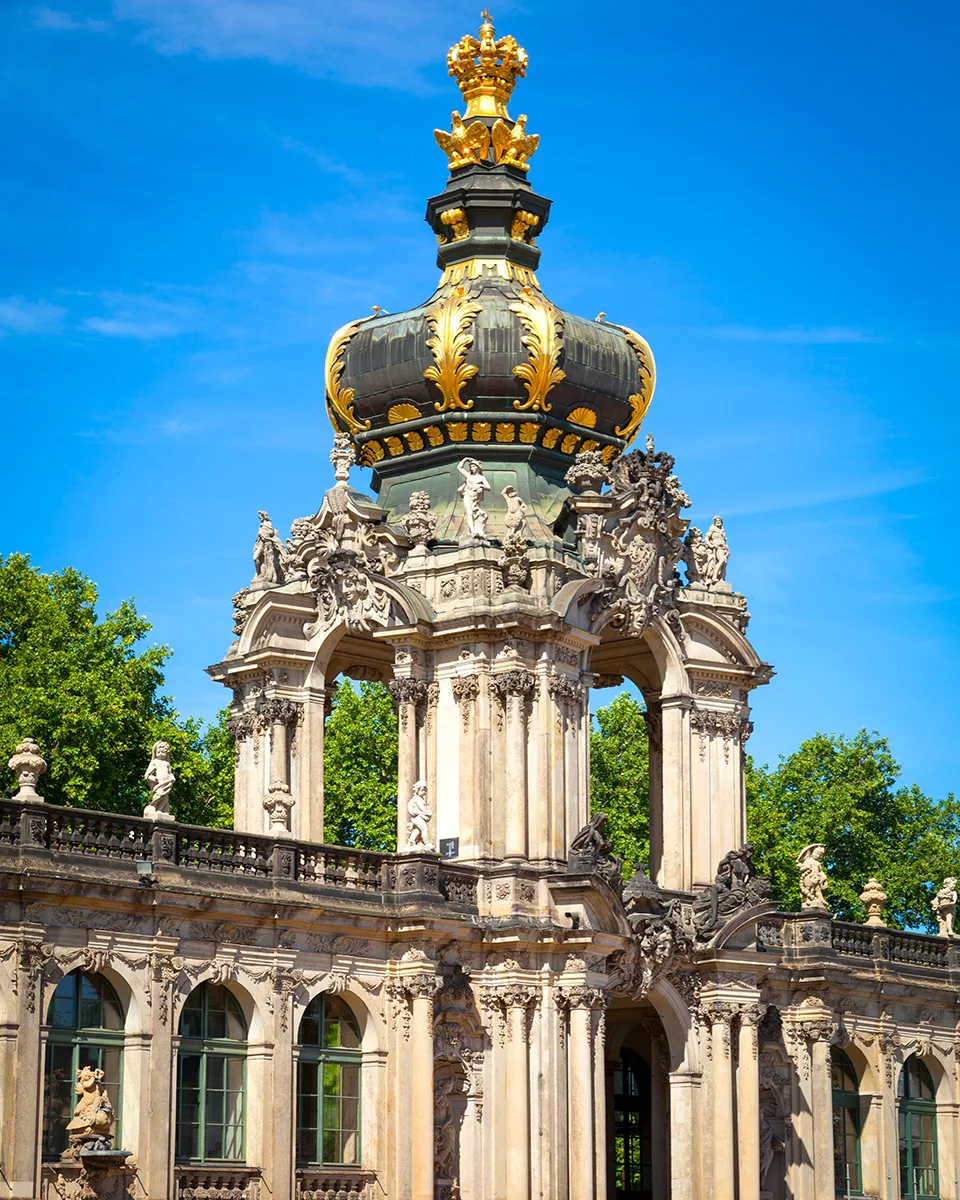 Zwinger, Dresden’in barok mimaride ulaştığı zirve. “Kale Avlusu” olarak bilinen bu görkemli komplekse, taç kapısı Kronentor’dan giriliyor ve daha ilk adımda şehrin neden “Almanya’nın Floransa’sı” olarak anıldığını anlıyorsunuz. Güçlü Augustus, bu alanı yaratmak için adeta küçük bir sanatçı ordusu kurmuş. Mimar Matthäus Daniel Pöppelmann önderliğinde başlayan çalışmalar 1707’de başlamış, 1728’de tamamlanmış.