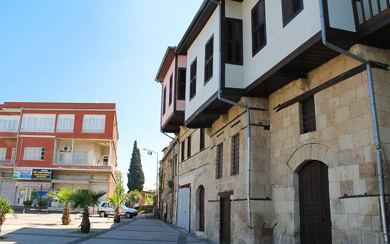 Dar sokakların her iki kenarına sıralanmış evlerin mimarisinin oluşumunda taş, kerpiç ve ahşap uyumu dikkatten kaçmıyor. Alt katları işlik olarak düşünülen bu yapılarda, bu katlar yüksek tutularak pamuk depolamaya uygun hale getirilmiş.