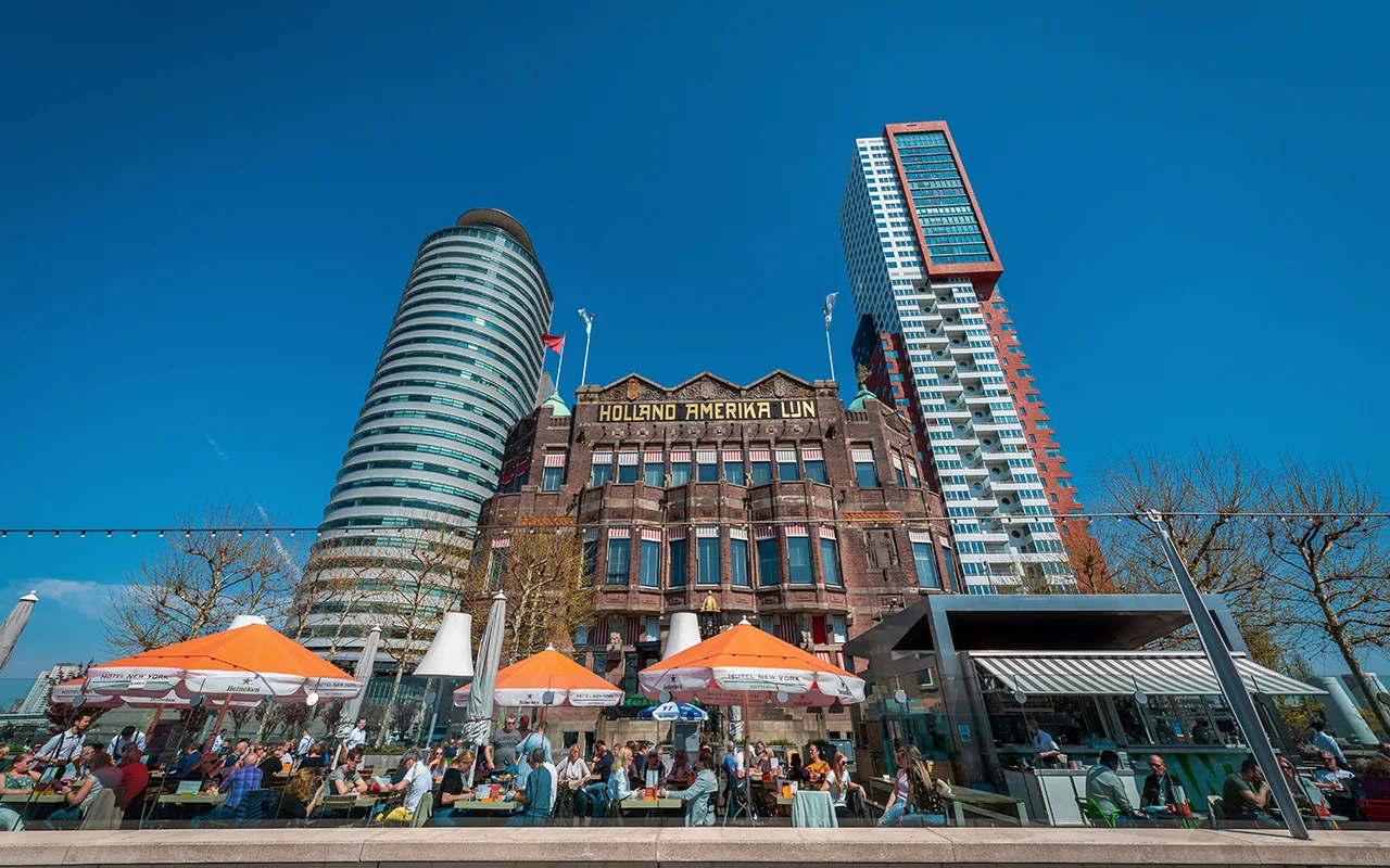 Wilhelmina limanında dolaşın ve nehrin karşısında bulunan Erasmus Köprüsü’nden ve Benelux’de ki en uzun bina olan Maastoren’den Rotterdam’ın siluetini seyredin.
