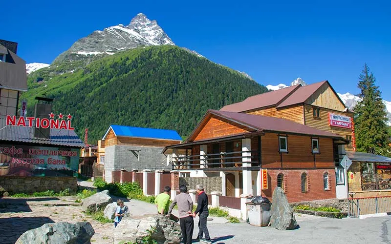 Kasabanın oldukça şık kafe ve butik otellerinde gerçek doğanın içerisinde tatil yaparken stresten arınmak mümkün. Belki Alp kasabaları gibi çikolata kokmuyor ama, misafirperver Kafkasyalıların ikram ettiği, buranın leziz zengin mutfağının tadını bir başka yerde bulmak da pek kolay değil.