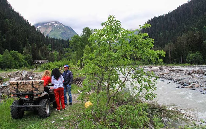 Tam gün süren Kafkas dağlarındaki ATV gezim, hatıralarımda unutulmayacak bir deneyim olarak yer aldı. Yüksekliği 2,000 metreyi geçen, artık ağaçların yetişmediği yüksekliklere çıkıp, birbirine paralel uzanan Kafkas Dağlarının zirvesine neredeyse aynı yükseltiden bakabiliyorsunuz. ATV’den inip bu enfes çayırlarda yürümeli, piknik yapmalı, manzarayı uzun uzun izlemeli.