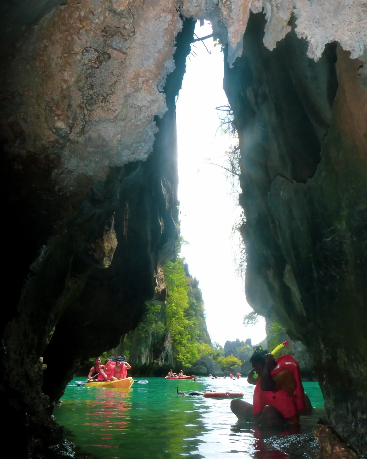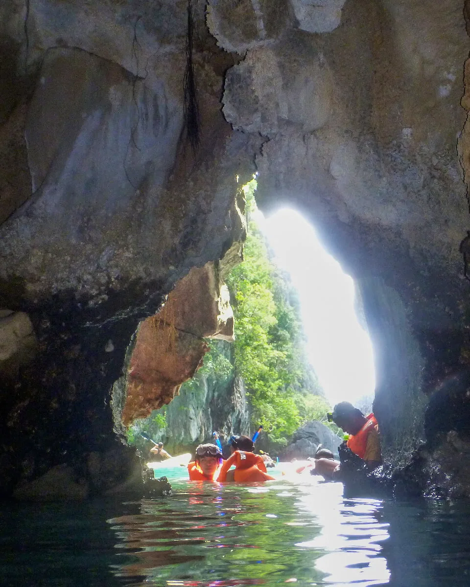 Cudugnon Cave, bölgede yer alan çok sayıdaki mağara oluşumlarından biri. İlk olarak, mağaraya girmek için dar bir delikten tırmanmanız gereken küçük bir kumsala iniyorsunuz. Mağaranın önünde dar bir plaj olduğundan girişine yürüyerek ulaşabiliyorsunuz. Mağara girişteki kayanın üzerine kılavuzumuz can yeleklerimizi serdi.