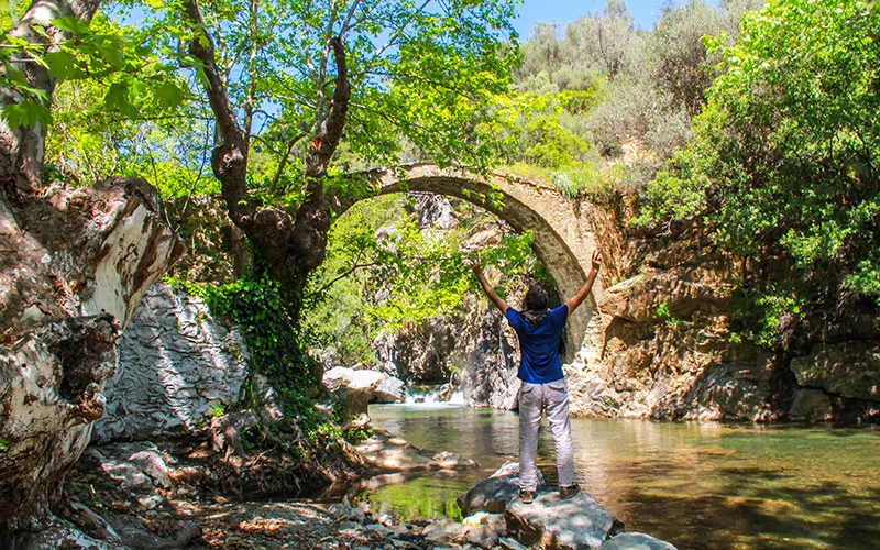 Tesislerin yanındaki patikayı izleyerek aşağıya, Başdeğirmen mevkisine doğru yürüdüğünüzde zamanın nasıl durduğuna şahitlik edeceksiniz. Zamanın yorgunluğuna yenik düşmüş olsa da eski değirmenin taşları, çarkı ve su yolları hala orada, geçmişin üretim ritmini fısıldıyor. Hemen yanı başında yükselen ve Roma döneminden miras kaldığı söylenen kemerli köprü ise, suya düşen yansımasıyla fotoğraf meraklıları için adeta bir tablo oluşturuyor.