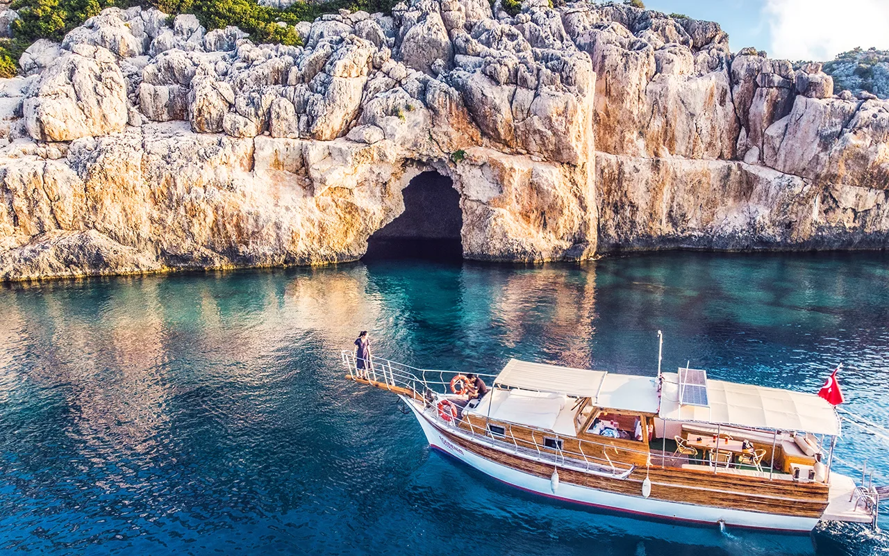 Günübirlik tekne turları veya tekne konaklamalı mavi tur gezileriyle Kekova Bölgesindeki Aperlai, Akvaryum Koyu, Kocakarı Koyu, Kekova Batıkşehir, Buzağılık, Gökkaya Koyu, Salyangoz Koyu, Burç Koyu gibi enfes yerlere Kaleköy ve Üçağız köylerine uğranıyor.