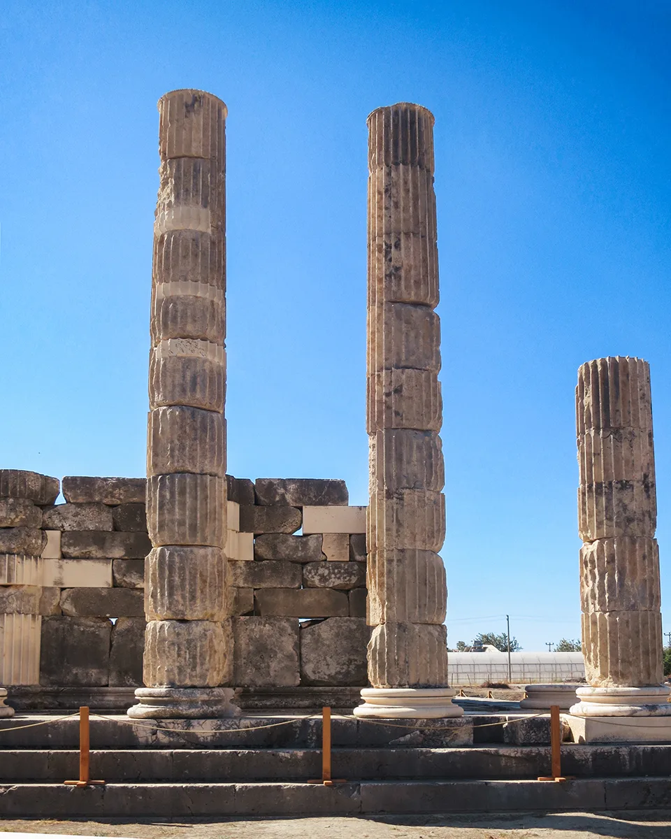 En ilginç yapılardan biri olan 6 prizmalı gövdeli mezar anıtı, hamam ve kilisenin yanı sıra tahrip olmuş tiyatro, kentte görülebilecek kalıntılar arasında.
