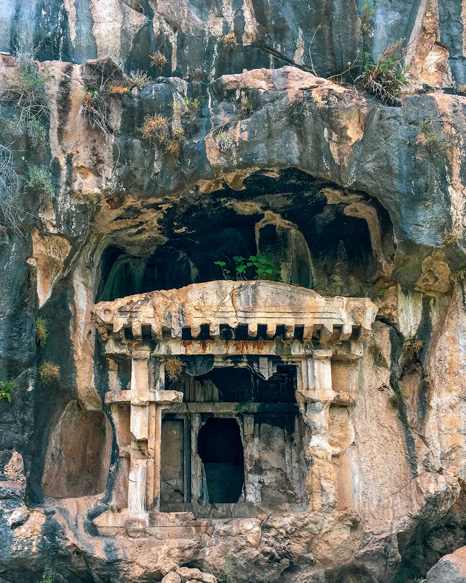 Yakınlarında bulunan yerleşim yerlerine rağmen doğayla tamamen iç içe geçen Sidyma Antik Kenti, Likya’nın tanrılarına adanmış tapınakları, büyük kaya mezarları ve sarmaşıklarla birleşmiş surlarıyla görülmesi gereken yerler listesine girmeyi hak ediyor.