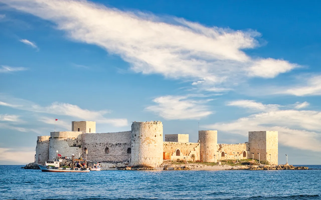 Mersin’de tarih var. Hitit, Yunan, Roma, Bizans, Selçuklu, Osmanlı mimari eserleriyle dolu… Kutsal Roma İmparatoru Frederick Barbarossa’nın yürüdüğü coğrafyadan, Aslan Yürekli Richard’ın kuşattığı Antakya’ya gitmek için gelinir. Kutsal Kudüs’ün izlerini görmek için Kız Kalesine, Kız Kalesinin karşısındaki Şövalye Kalesine gelinir.