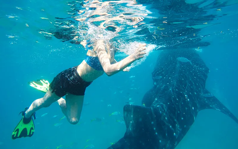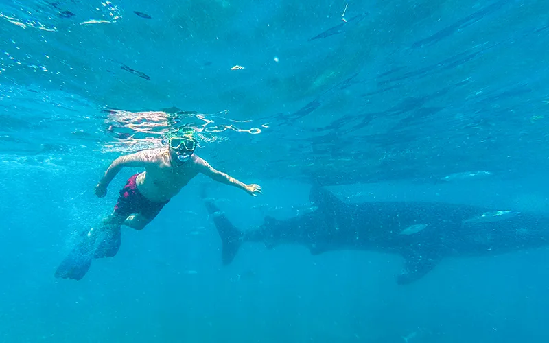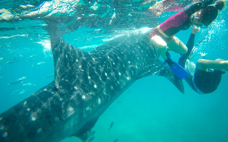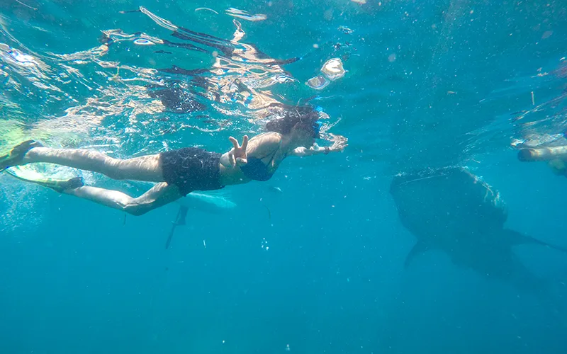 Devasa ancak şirin görünümlü balina köpekbalıkları, karaya şaşırtıcı derecede yakın mesafede gözlemleniyor. 3-4’er kişi ufak botlara biniyor ve birkaç dakika içerisinde gözlem noktasında ağızlarını su yüzeyine çıkarmış balina köpekbalıkları görülmeye başlanıyor.