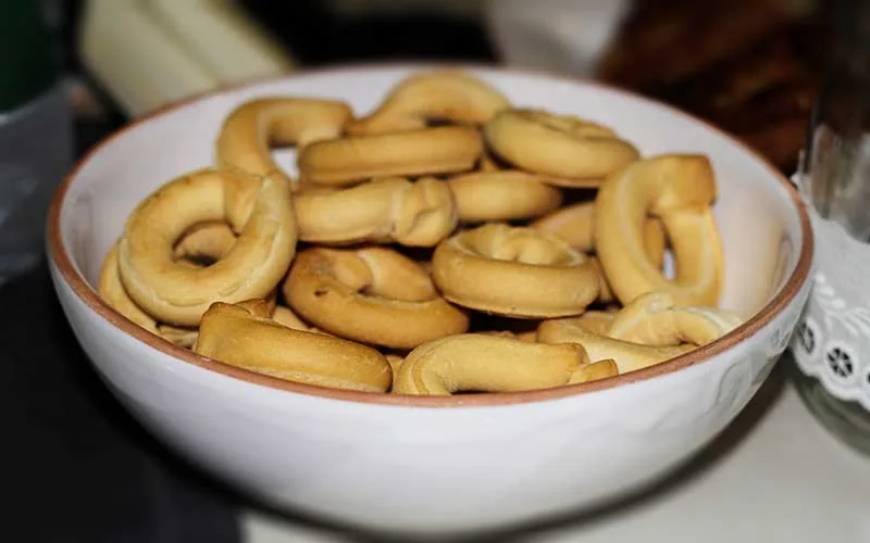 Güney İtalya’nın nadide snacklerinden birisi ve ben pek sevdim. Bol peynir ve zeytinyağı ile hazırlanan bu kurabiye, yemeklerin öncesinde veya yanında sunuluyor. Beyaz şarap, sıvı yağ, un , irmik karışımıyla hazırlanıyor. Ek olarak rezene tohumu, pul biber, ince kıyılmış zeytin ve biberiye ekleniyor.