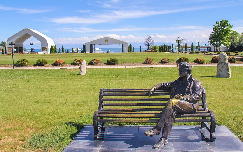Aytmatov, dünyanın 20. yüzyılda yaşamış en büyük edebiyatçılarından biri sayılıyor. Dünya edebiyatına ‘Selvi Boylum Al Yazmalım’, ‘Cemile’, ‘Gün Olur Asra Bedel’, ‘Toprak Ana’, ‘Gülsarı’, ‘Dişi kurdun Rüyaları’, ‘Yüz Yüze’ gibi eserleriyle katkıda bulunan yazarın kitapları yüz elliye yakın dile çevrilmiş, filmlere ve tiyatro oyunlarına konu olmuş. Müzede bankta oturan biri olarak bir de heykeli var. Yanında oturup bir fotoğraf çektirin.