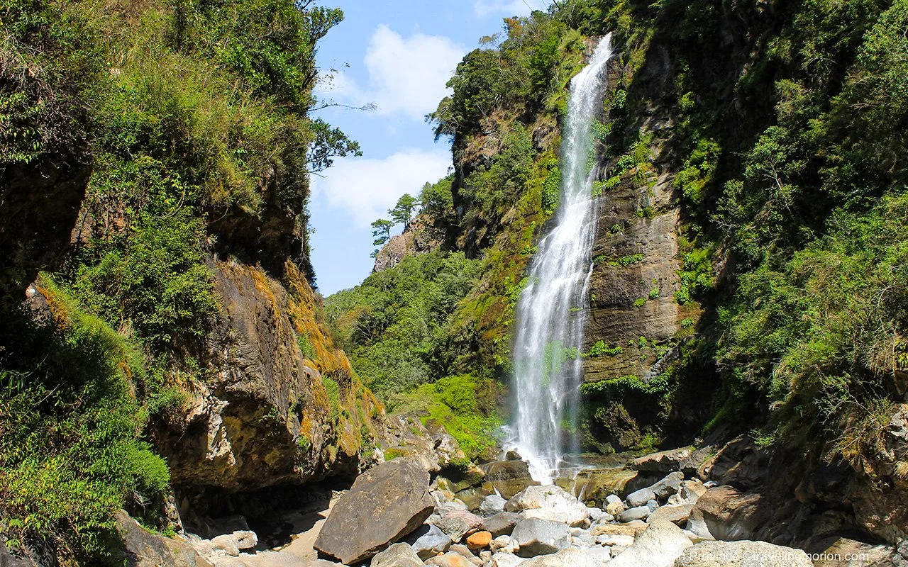 Bir vadinin derinliklerinde saklı, ana yoldan yürüyerek şelaleye gitmek bir ila iki saat sürüyor. Birde o kadar dönüş var tabi. Yürüyüşün başlangıcı kolay. Yol zaten betondan olduğu için şelaleye inmek zor değil. Patika küçük bir köyden geçiyor. Köyde tuvaletler, yiyecek ve içecek satan mağazalar var.