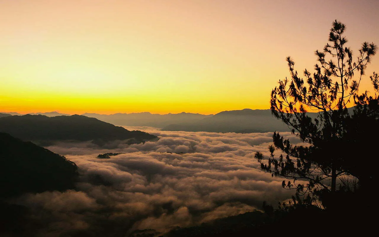 Güneş bulutlar denizinden çıkarak yükseliyor. Aşağıdaki tepeleri ve vadileri kaplayan beyaz bulutlardan oluşan bir okyanusu gözler önüne seriyor. Altın gün doğumunun yanı sıra, tepenin ve patikanın etrafında sıralanan sisler içerisindeki ağaçlar da muhteşem bir manzara oluşturuyor.