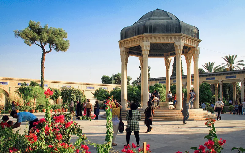 Şiraz’ın köklü İran şiiri geleneğinin en önemli temsilcilerinden Hafız ve Sadi’nin mezarları şehrin en çok ziyaret edilen noktalarından. Hafıziye olarak bilinen Hafız türbesi geniş bir bahçe içinde, iki havuzla süslü. Kendi deyimiyle ‘Ruhsal açlığını doyurmak için’ yollara düşen Sadi’nin türbesi bir tepenin eteğinde, ‘Qanat’ adı verilen su yolu ile beslenen balıklı bir havuz başında, sakin ve huzurlu bir ortamda görülebiliyor.