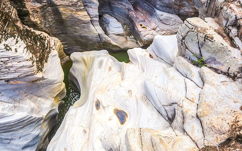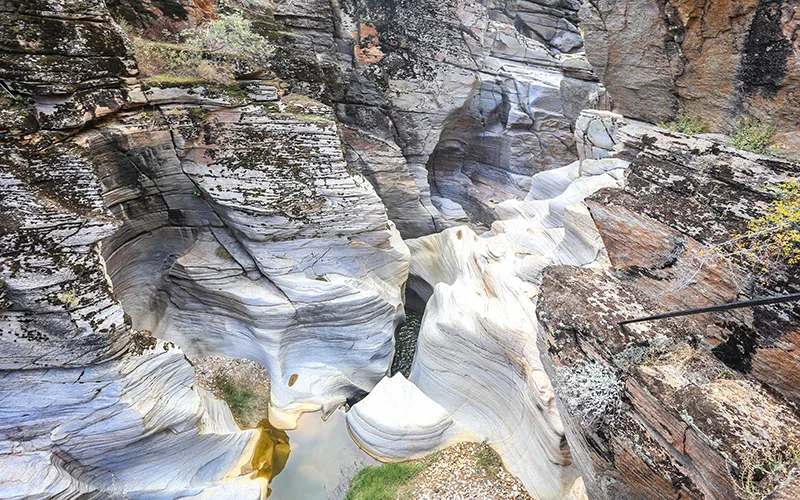 Taşyaran Vadisinin en dar yerindeki gnaystaki pembe ortoklaz minerali, kayalıklarının manzarasını daha da ilginç kılıyor. Yosun tuttuğu dönemlerde kayalıklar rengarenk bir ressam paleti gibi sanki.