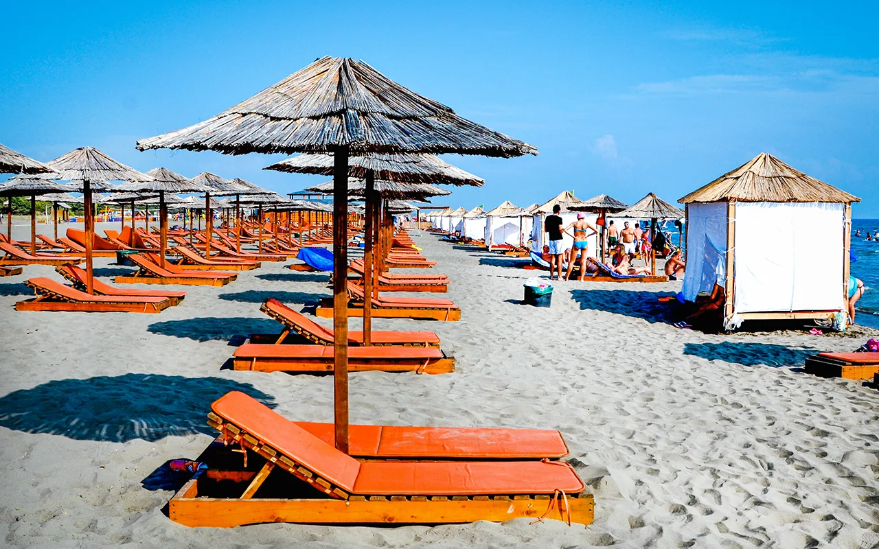 ⛱ Mala Plaža – Ulcinj’in tam merkezinde, Eski Kent ile yat limanı arasında yer alıyor. Diğer adı ‘Small Beach’ olan yer, Ulcinj’in tadını çıkarmak ve eğlenmek için çok sevimli bir plaj. Maldivler veya Bora Bora’da görebileceğiniz sazdan yapılı şemsiyeler plaj boyunca hoş bir dekor oluşturuyor.