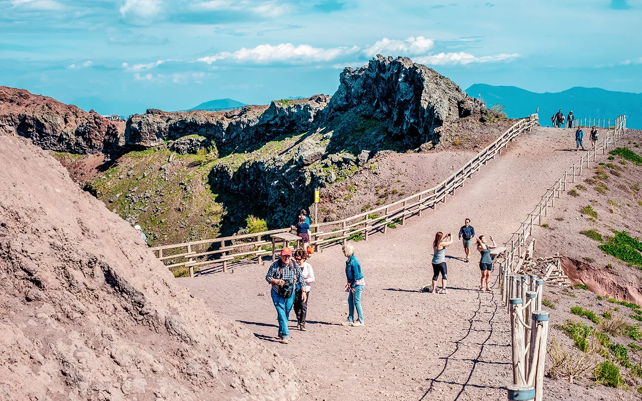 Zirveden Vezüv Yanardağının uçsuz bucaksız kalderasına bakarken gözünüzde Pompeii ve Herculaneum’un nasıl binlerce yıl balçığa gömdüğünü hayal edin. Tabi manzaranın da keyfini çıkarın. 650 metre genişliğinde ve deniz seviyesinden 1.282 m yukardaki kraterin kendisi de sızan sülfür dumanı ile muhteşem bir manzarası var.