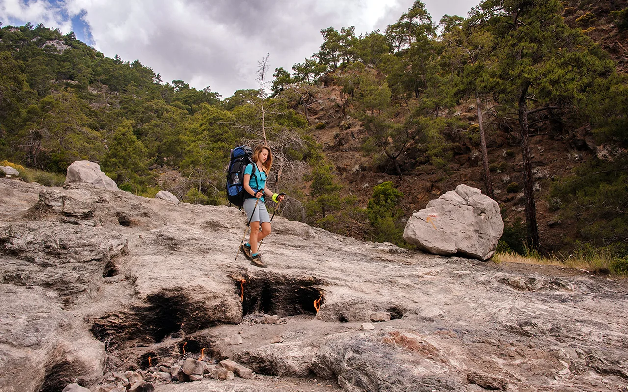 Yol boyunca çam reçinesinin yoğun aroması burnunuzu doldururken, ayaklarınızın altında çıtırdayan kuru yapraklar ve gevşek kayalar size eşlik ediyor. Patikanın son bölümünde eğim artıyor ve nefes almanız hızlanıyor—ancak hedefe ulaştığınızda bu fiziksel çaba unutuluyor.