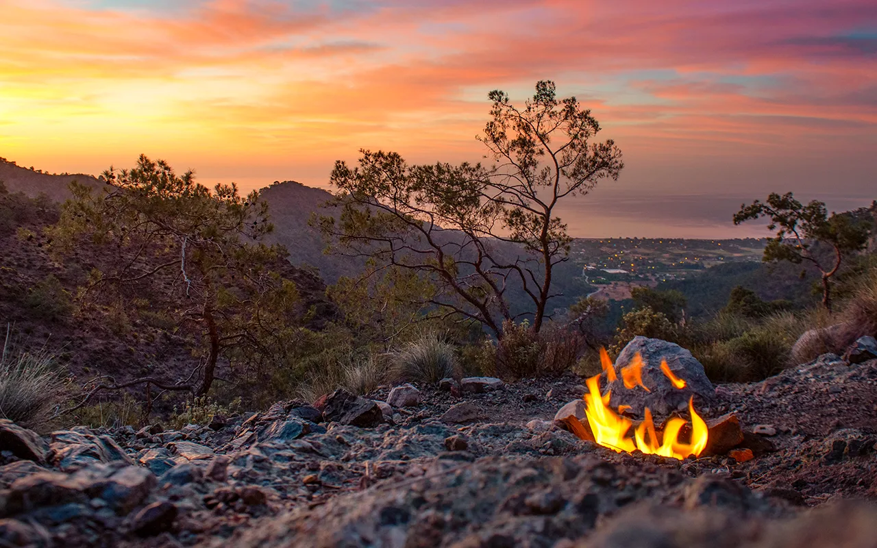 Güneş batımından sonraki saatlerde Yanartaş‘a tırmanmak, tamamen farklı bir deneyim sunuyor. Gündüz vakti göze pek çarpmayan alevler, karanlıkta adeta kayaların ruhunu canlandırıyor. Alevlerin çıkardığı hafif çıtırtı sesi ve yanmış toprak kokusu, bu doğal fenomenin sürekliliğini hissettiriyor.