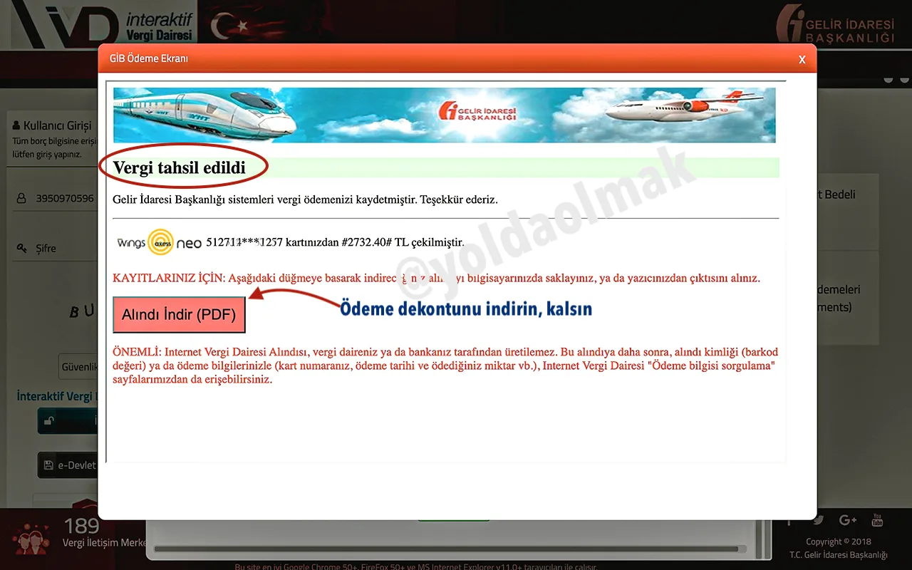 Kredi kartı bilgilerinizi girerken dikkatli olun – bu kadar yüksek tutarda işlem yaparken bankanızdan onay SMS’i gelebilir. Ödeme tamamlandıktan sonra dekont alma seçeneği çıkıyor, mutlaka kaydedin. E-devlet kayıt aşamasında gerekebilir.